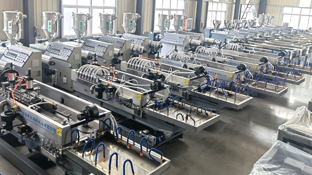 青島崔氏塑料機械有限公司位于青島膠州市膠西工業園區,香港路與同三高速交匯處,距膠東國際機場20多公里,地理位置便利,占地面積20000多平方米,是一家集生產與研發(fā)各種塑料制品設備的環(huán)保型企業。我公司主營預應力波紋管設備、雙壁波紋管設備、電力管設備、塑料波紋管設備、汽車線束波紋管設備、PPR、PE、PVC、PERT管材設備及其它各種管材設備、塑料型材設備、塑料蜂窩板設備。公司技術力量雄厚,開發(fā)能力強,生產工藝先進,以開發(fā)新材料,研制新工藝為基礎生產各種塑料擠出設備。公司產品遍布全國各地,并且遠銷歐州,獨聯體,南美洲,中東,東南亞,大洋州,非洲等許多國家和地區。